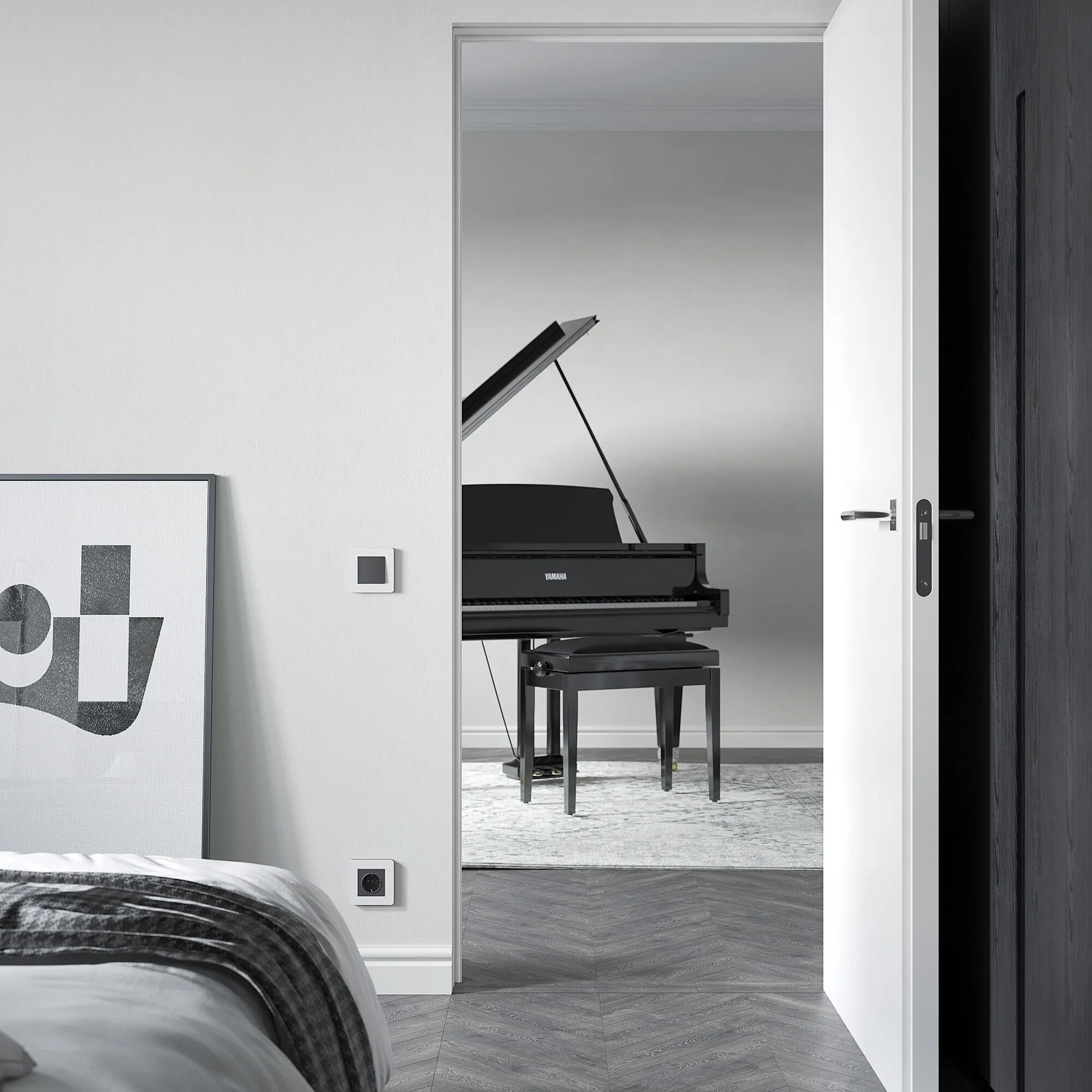 Коллекция Split переосмысливает привычные электроустановочные изделия, превращая их в элементы современного декора. Благодаря продуманному сочетанию цветов, форм и тактильных ощущений, рамка белый/чёрный становится не просто обрамлением, а визуальным фокусом на стене.