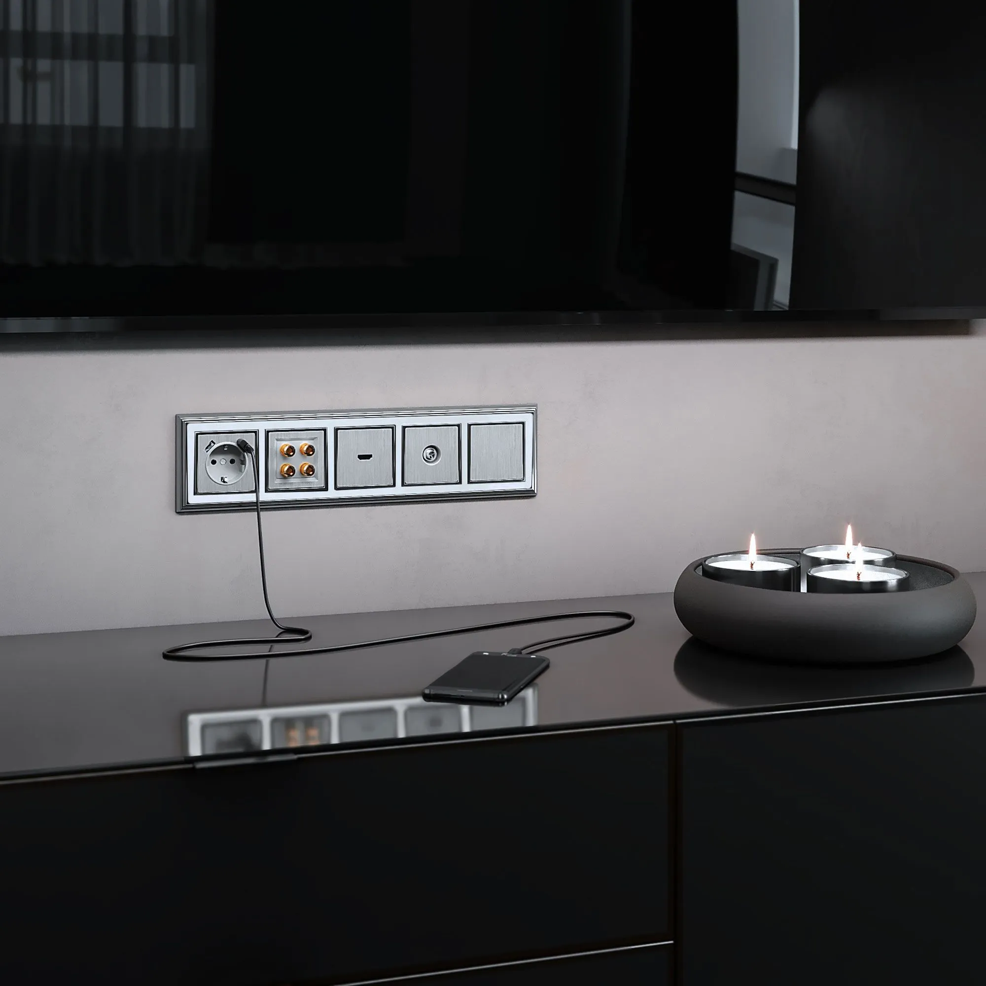 Встраиваемая акустическая розетка совместима со всеми рамками из коллекций Werkel™, это позволяет создавать оригинальные, стилевые и цветовые комбинации.